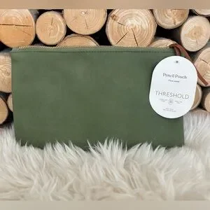 This lovely green faux suede leather pencil case is stuffed with E.L.F Power Grip Matte Primer, KITSCH Ruched Satin Scrunchies, and Scunci fine hair claw clips! Pouch makes a great makeup pouch for organizing your beauty essentials. Perfect purse organizer. Great for travel, bringing art supplies on the go, for work, back to school, high school, college, and more!