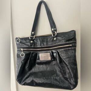 Iconic Coach Poppy shoulder bag in buttery soft black leather with edgy silver hardware and signature Poppy plaque. This Y2K-era Coach style is super on-trend right now and perfect for everyday wear, work, travel, or as a roomy chic carryall.
