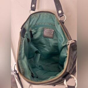 Coach Y2K Poppy Leather Shoulder Bag with Teal Lining & Silver Hardware
