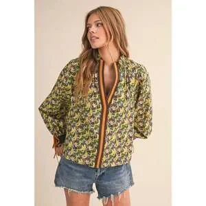 * Long sleeves with adjustable tie cuffs