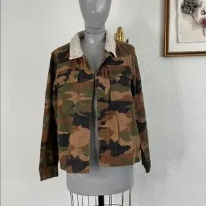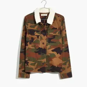 Madewell Northward Cropped Army Jacket in Cottontail Camo: Sherpa Edition
