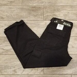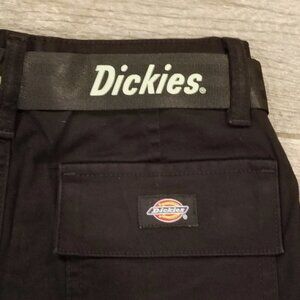Dickies Women's Relaxed Fit Cropped Cargo Pants Belt Belted Black New