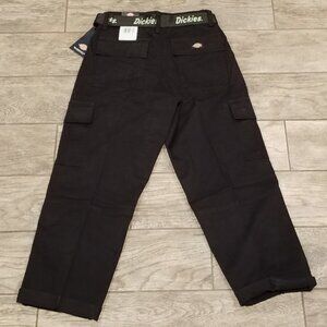 Dickies Women's Relaxed Baggy Fit Cropped Cargo Pants Belt Belted Black New