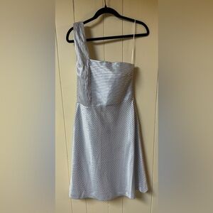 Banana Republic One Shoulder Blue/White Stripe Satin Fit & Flare Dress 8