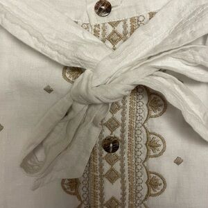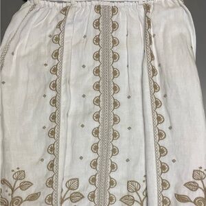 Johnny Was JW Los Angeles Tasya Button Front White 100% Linen Embroidered Skirt