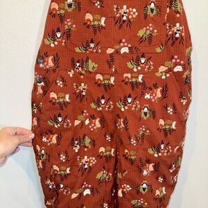Rare and discontinued Duluth Trading Co. overall shorts in a stunning rust/terracotta woodland print. These are an older, hard-to-find style and are no longer produced by Duluth—making them a true collector piece for fans of unique workwear and cottagecore aesthetics.