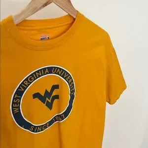 West Virginia University Yellow T-Shirt Hanes Tshirt Size Large