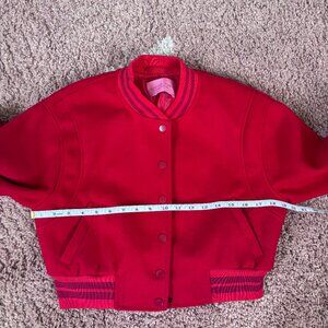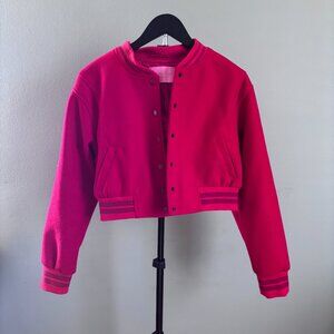 Azalea Wang Womens Medium Red Crop Bomber Jacket Streetwear Moto Style Striped