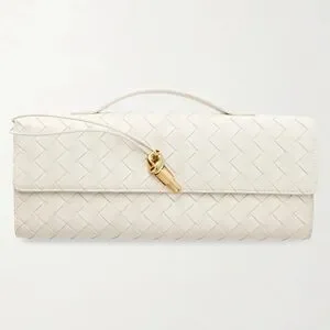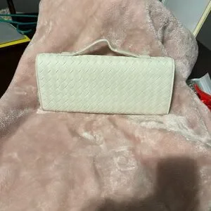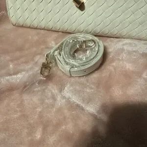 This chic ivory woven clutch is a stylish addition to any outfit. Its elegant design and versatile color make it perfect for any occasion. Also comes with a strap.