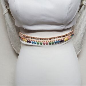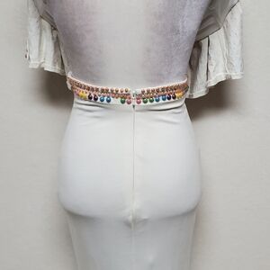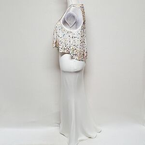 TONY Bowls Ivory Multi-color Beaded Jewel Neckline Draped Two-Piece Dress 4
