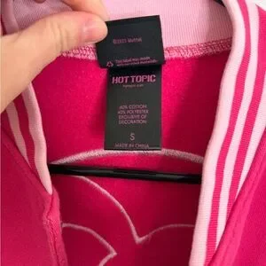 Chic Barbie jacket in pink and light pink. Features button-up front and striped cuffs.