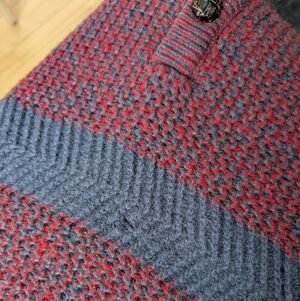 Vintage Woolrich Wooden Button Henley Striped Crewneck Sweater In Red/Navy