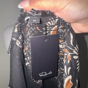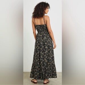 Effortlessly feminine Rails maxi dress featuring a delicate floral print on a dark backdrop. Designed with a flattering V-neckline, adjustable spaghetti straps, and a softly gathered waist that flows into a relaxed, airy skirt. Lightweight and breathable, perfect for vacations, brunch, or warm weather evenings. Easy to dress up with heels or keep casual with sandals.