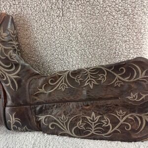 Tony Lama Women's 8B Brown Leather Western Cowboy Calf High Embroidered Boots