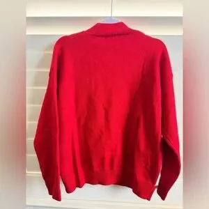 Bold red sweater with a charming white and gray character design of the beloved Big Hero Six character Baymax. Perfect for fans and casual wear. Soft and fluffy knit material. Fits Women’s size L