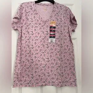 Elevate your style with this chic pink floral V-neck tee. Ideal for casual outings.
