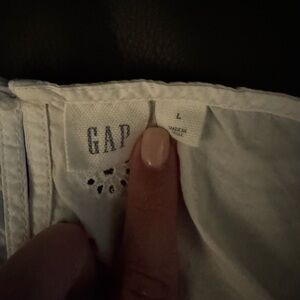 The Gap White Eyelet Ruffle Sleeve Blouse in floral design is a stylish and classic top perfect for casual occasions. Made of cotton and polyester, this blouse features a round neckline, long ruffle sleeves, and a button closure. The lightweight and breathable fabric makes it ideal for the summer and spring seasons, while the eyelet and embroidered accents add a touch of elegance to the outfit. Perfect for a regular fit, this blouse in size L is a versatile addition to any woman's wardrobe.