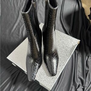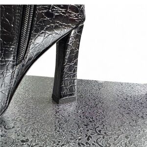 NWT-Elegant Black Pointed Toe Chunky High Heel Ankle Boots Crocodile Printed