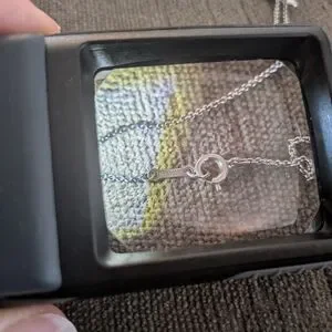 This elegant silver crescent moon necklace adds a touch of sophistication to any outfit. Perfect for any occasion.