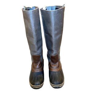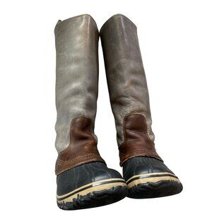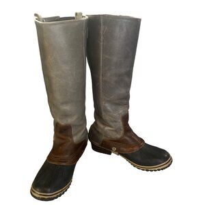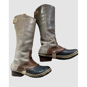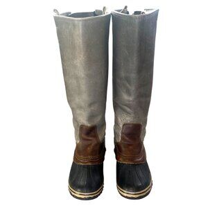 SOREL RARE ORIGINAL SLIMPACK TALL BOOTS, Size 10, Leather, Shale Gray with brown accents, great preloved condition.