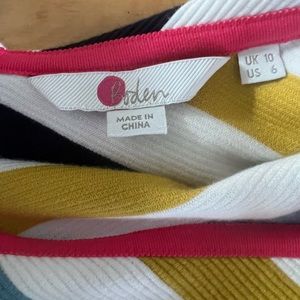 Boden Ottoman Peter Pan collar top with bold, colorful stripes. Great knit feel with 3/4 sleeves. It looks so cute on but living in SoCal it doesn’t get any air play.