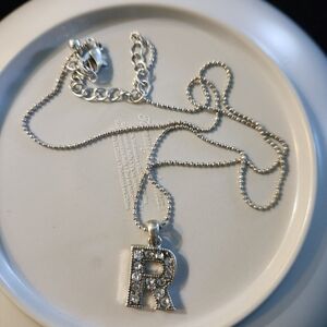 Elegant Silvertone And Rhinestone Initial R Necklace