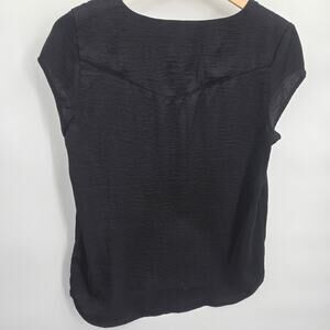 Small Black Blouse Top Short Cap Sleeve Plaid Flowy Shirt V Neck Lightweight