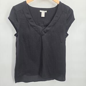 H&M Small Black Blouse Top Short Cap Sleeve Plaid Flowy Shirt V Neck Lightweight