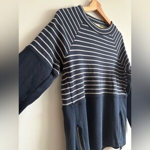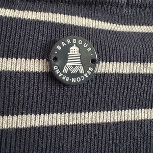 Barbour Navy & White Stripe Side Zip Cotton Pullover Top | Size 6