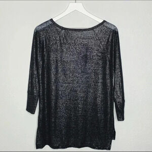 Pullover semi sheer high low top with side slits, and has stretch to it
