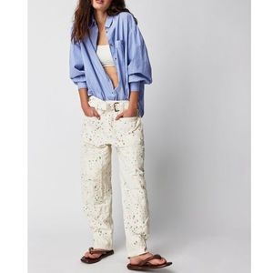 FREE PEOPLE Painter Pants NEW Size 6 Ecru Splatter NEW With Tag