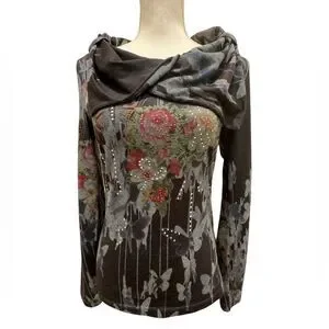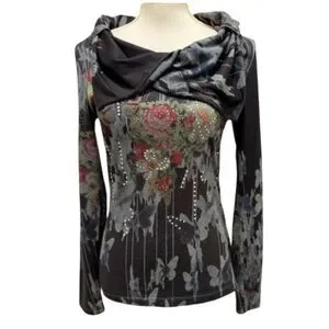 Alberto Makali Floral Printed and Embelished Top. Vintage Y2K Design: Stunning floral print with intricate embellishments