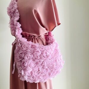 Chic crossbody bag with rosette design. Perfect for adding flair to any outfit.