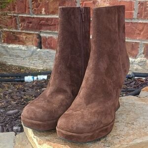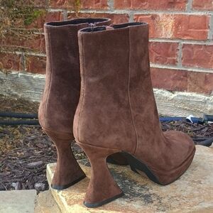 Jeffrey Campbell Humanity Zip Platform Brown Suede Boots Women's Size 8.5