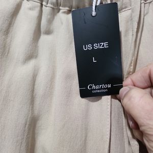 Wasteband cause slight gathering in the front two full pockets on the front. Pull up style. Great for any occasion, Stylish, For mature women size large.