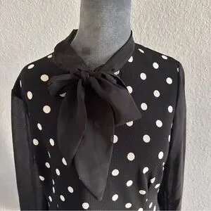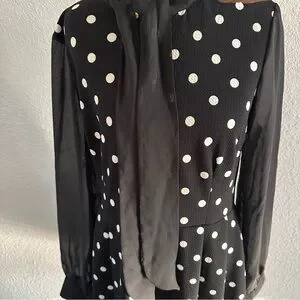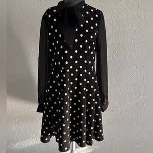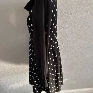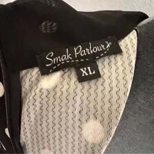 Smak Parlour Black Polka Dot Midi Dress with Sheer Sleeves – Size XL