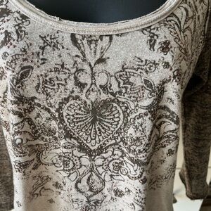 Miss Me Beige and Brown Top with decorative bling on front.