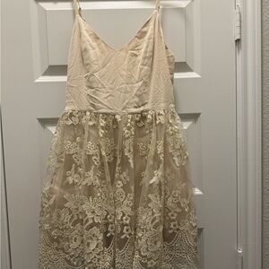 Alice + Olivia Beige Antique Gold Lace Julianne Ballerina Dress
