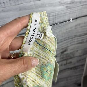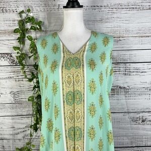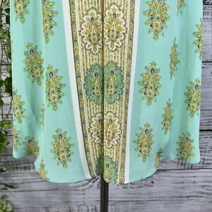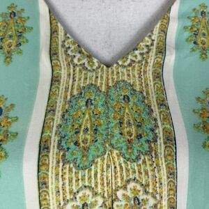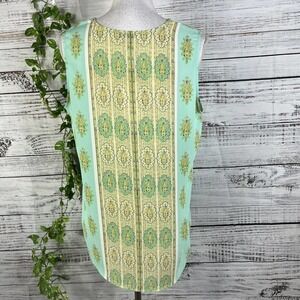 Rose + Olive Blouse Tank size Medium Mint Green Gold Paisley Pleated Sheer Boho