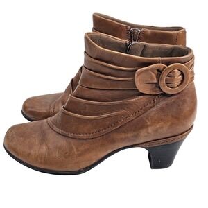 Cobble Hill Comfortable Brown Leather Buckle Ankle Boots Size 8.5 Wide
