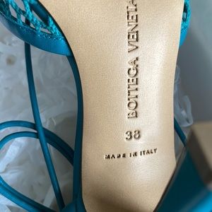Bottega veneta stretch web sandal blaster teal blue stiletto mesh pump sz 38