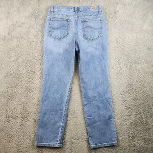 Women's Straight Leg Relaxed Fit Mid Rise Jeans Size 8P Blue Stretch Classic Lee