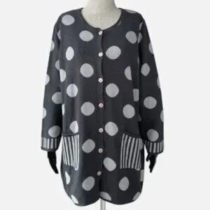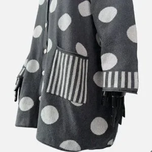 Gudrun Sjoden Long Cardigan Gray White Button Polka Dot