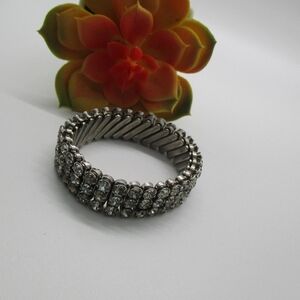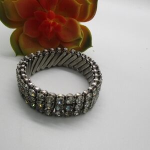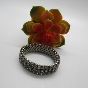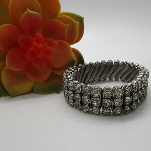 Vintage silvertone accordion stretch pronged rhinestone bracelet art deco