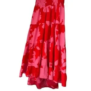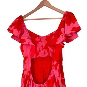 By Anthropologie Silverlake red/pink floral flutter sleeve maxi dress, size XL.