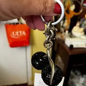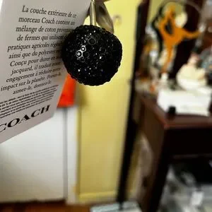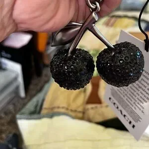 Authentic new without tags Coach black crystal cherry bag charm/keychain. In pristine condition never used. Silver tone hardware. Do you have a black crystal bag then you need this bag charm. She is gorgeous. Comes from a smoke free home. I ship next business day. Reasonable offers considered please no low ball offers. Questions just ask.