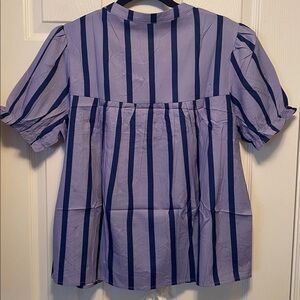 Falechay Purple/Blue Striped Tie Front 1/2 Button Down Top…size L