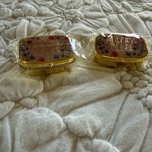 Set of two gold pill case with secure closure.
