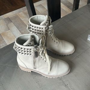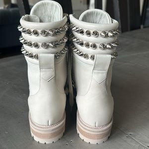 Christian Louboutin winter spikes flat calf leather motorcycle combat boot 37.5