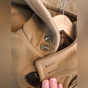 Classic Vintage Duffel coat with horn toggle closures by McGregor, I think from late 1960s to early 1970s based on the tag. This stunning, classic and timeless piece that is used, and in good condition with tons of life left. The internal wool plaid is gorgeous. Wool inside and out, very warm and durable, this is a heavy thick excellent quality piece. Hooded design for extra warmth. Minor imperfections but no holes or tears, all buttons and horn toggle buttons are secure and very unique. Exceptionally stylish and practical. 100% wool. My husband wears a Men’s Large, this fits him very well, as a Large. Men’s 40 L.